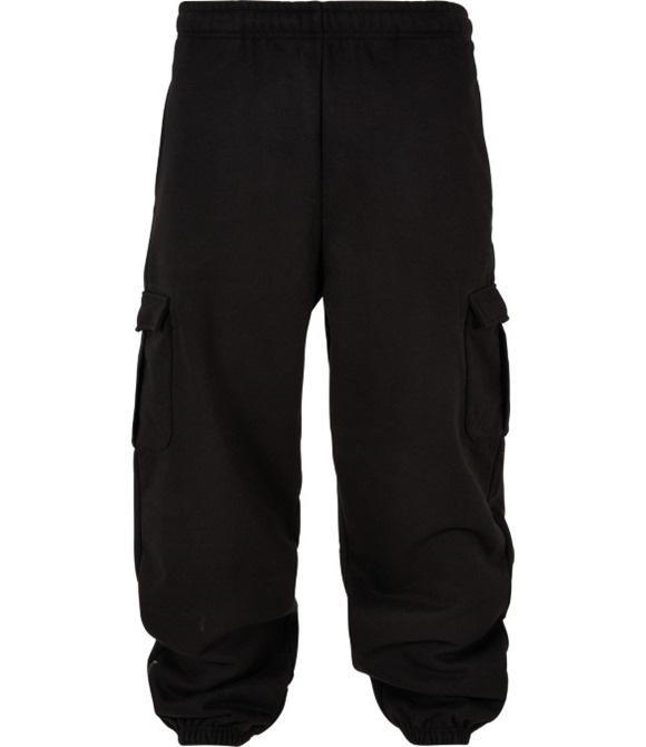 - These men�s sweatpants offer patched cargo pockets and a convincing 90s look. They are equipped with an elastic waistband and elastic cuffs, while also featuring additional zips, and the loose fit completes the picture harmoniously. The sweatpants are made from extra-heavy brushed fleece, which can further be refined via flex or screen printing.